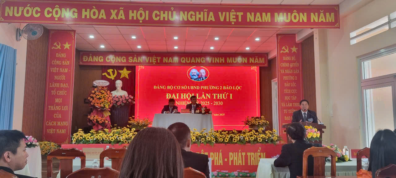 Đại hội Đảng bộ UBND Phường 2 Bảo Lộc lần thứ I, nhiệm kỳ 2025 - 2030 đã trình bày Báo cáo chính trị và phương hướng nhiệm vụ giải pháp của Đảng bộ nhiệm kỳ 2025 - 2030 . Tại đại hội thông qua tổng hợp ý kiến về góp ý báo cáo chính trị của Đảng bộ cơ sở UBND và Văn kiện Đại hội XIV của Đảng và bầu Đại biểu đi dự Đại hội cấp trên. Đại hội Đảng bộ UBND phường lần thứ I, nhiệm kỳ 2025 - 2030 quyêt tâm phát huy những kết quả đạt được, giữ vững đoàn kết , phát huy dân chủ, khát vọng phát triển, tiếp tục đổi mới, sáng tạo, phấn đấu thực hiện thắng lợi chỉ tiêu, nhiệm vụ Nghị quyết đại hộ nhiệm kỳ 2025 - 2030 đã đề ra.